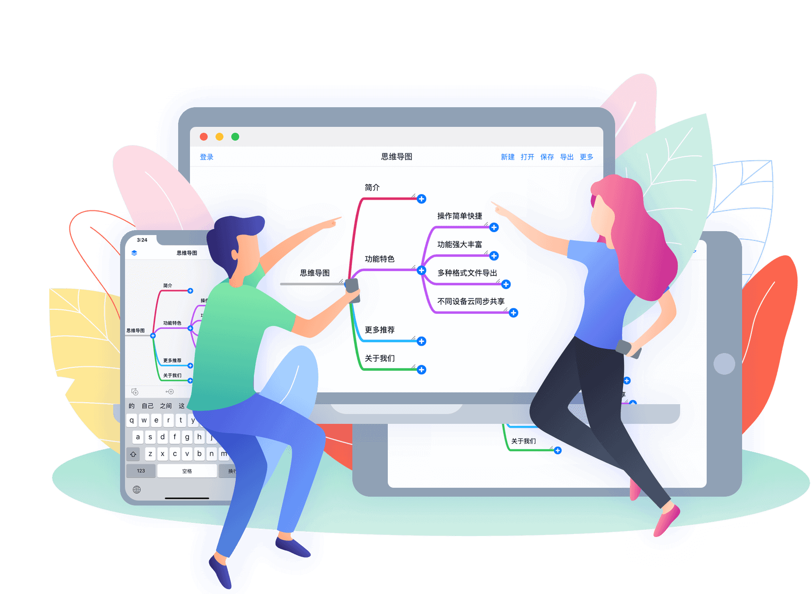 思維導圖可以導出為圖片、PDF、文字大綱和其他導圖軟件的格式,讓你更方便把它分享給好友。